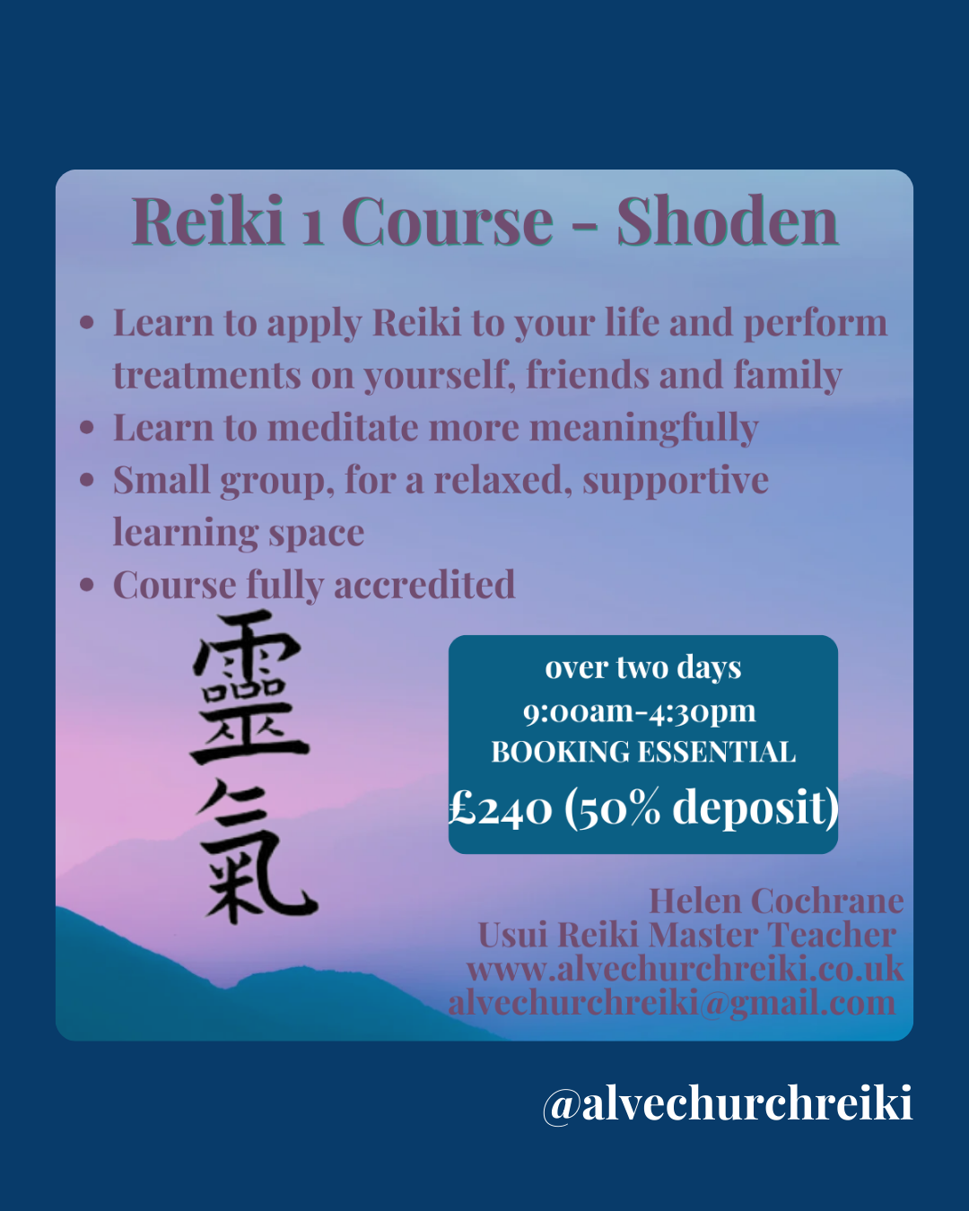 Call/message Helen on 07725013181 / Get in touch on email @ alvechurchreiki@gmail.com